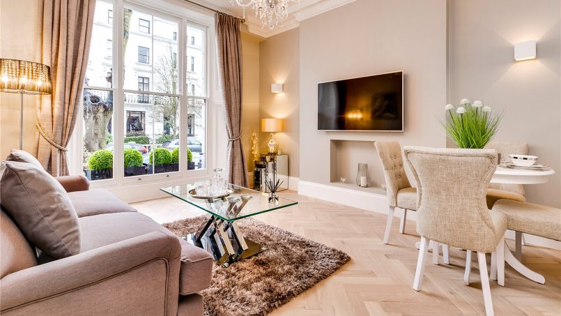 This superb apartment is within a grand white stucco-fronted Victoria terrace and has been completely refurbished to the highest specification. The accommodation features a fabulous reception room with glorious high ceilings, herringbone wooden flooring, ample dining space and floor to ceiling windows into a bright westerly aspect. Furthermore, there is separate, beautiful designed contemporary kitchen with remote light settings, Siemens appliances and a lovely aspect over gardens, a generous bedroom and a smartly finished bathroom with underfloor heating.